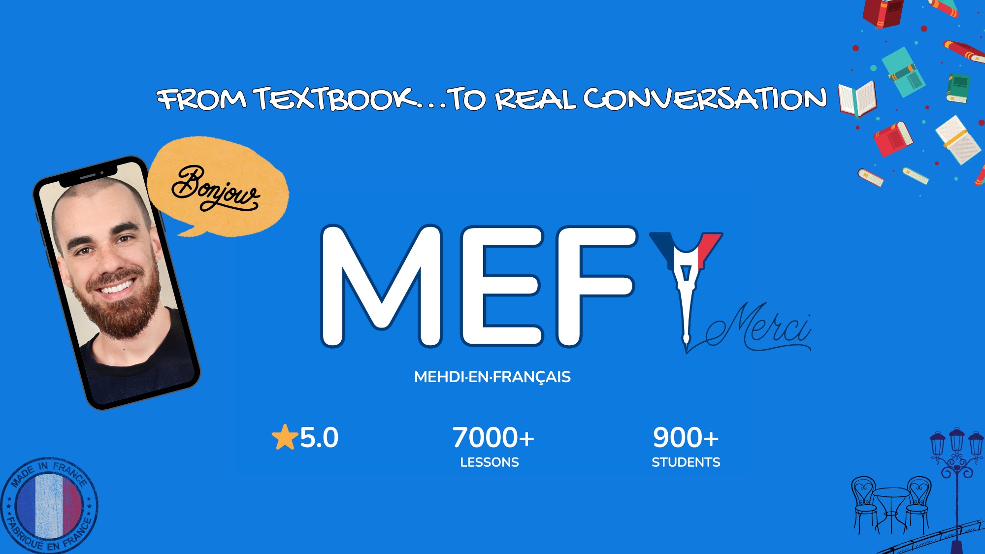 I had an excellent experience with Medhi as French professor! He is fun to speak with and always well-prepared with interesting materials. His extensive collection of grammar books is a big plus! Highly recommend! 🇫🇷