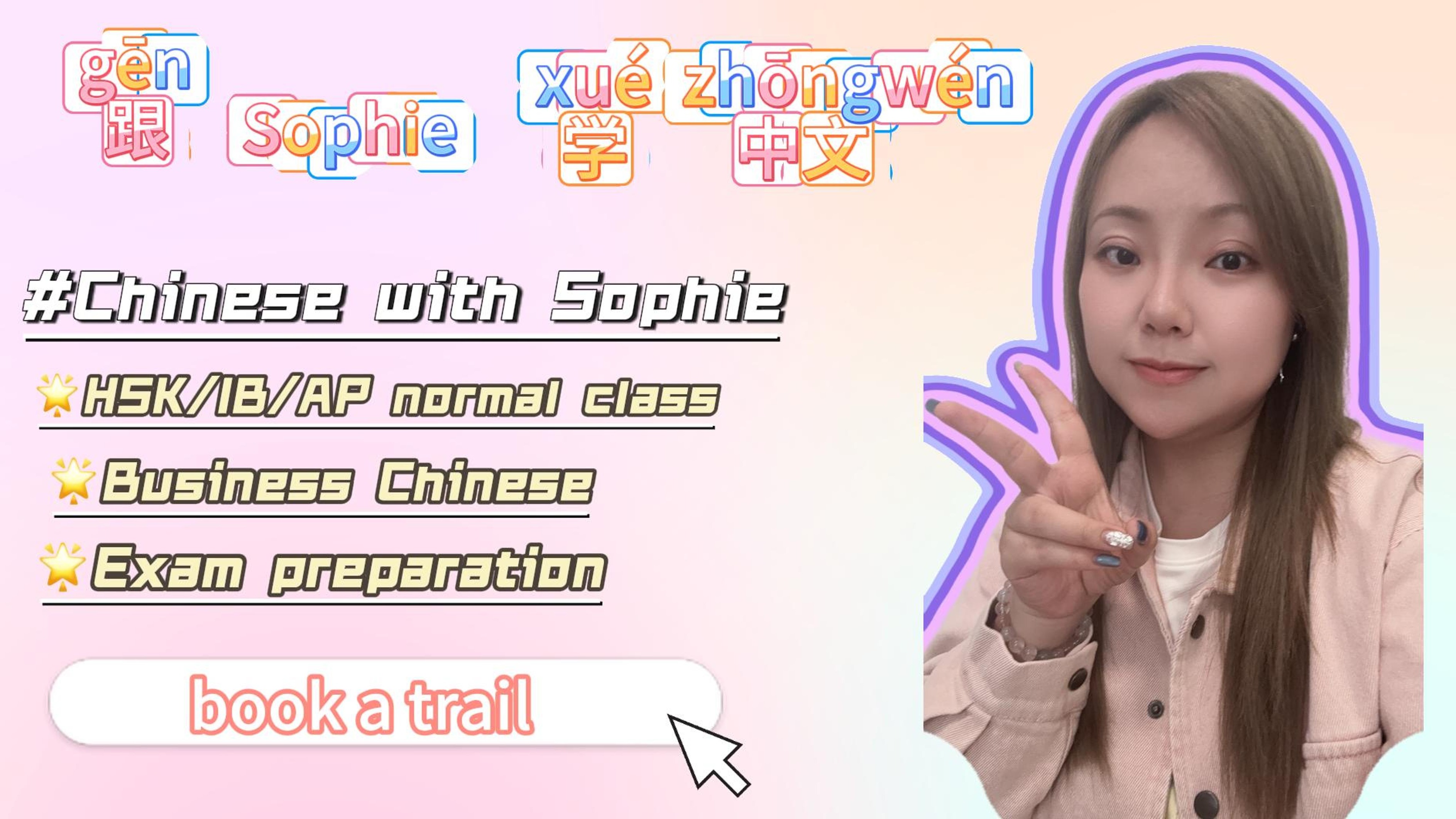 ✅7000+ lessons✅Daily topics✅Beginner✅HSK✅Conversational✅Writer (HSK graded articles) 🏅 Certifications • CTCSOL (International Chinese Teacher Certification) • English Teaching Qualification • National Mandarin Proficiency Certification 📚 Teaching Experience • 9+ years teaching since 2015 • Students aged 3 to 60+, both native and non-native speakers • Experienced with kindergarten & primary school learners – proven patience and adaptability • Content Writer for The Chairman's Bao, creating leveled reading materials for HSK learners 💡 What This Means for You ✅ Professional, structured lessons ✅ Patient, personalized teaching style ✅ Age-appropriate methods for all learners ✅ Practical learning materials aligned with HSK standards