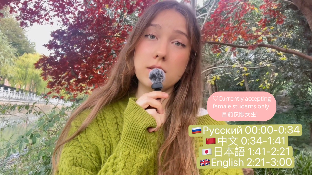 Russian for beginners & intermediate | 3年经验 |Currently accepting female students only 目前仅限女生! I started teaching Russian when a professor at my university asked me to help her. At first, it was just a part-time job to afford milk tea :) But we studied together almost every day for two years, and it turned into an “intensive teacher training course” for me. Later I found more students from China and Japan, started learning teaching methods seriously, and created my own materials. Now I have over three years of experience. I teach speaking, courses from A1 to B2, and help students prepare for entrance exams to Russian universities (MSU 莫大, Stieglitz Academy圣彼得堡国立艺术大学, Repin Academy列宾美院).