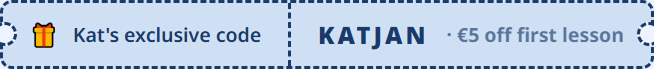 No subscription fees. Pay for individual lessons and get €5 off with the code KATJAN (minimum purchase of €10).