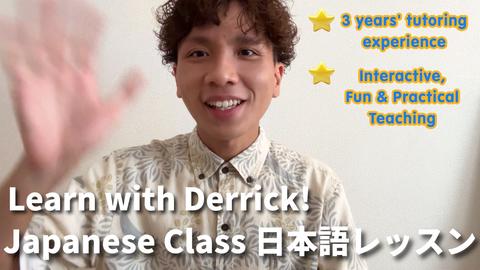 Derrick is an amazing teacher. He is very nice, patient and great at explaining meanings and concepts. I also love the materials he brings to the class. I cannot wait to have more classes with him and would highly recommend him to anyone wanting to learn Japanese.