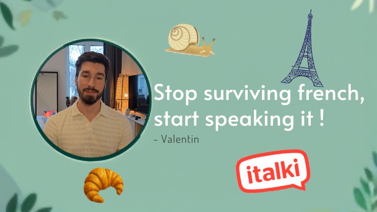 New on Italki! French native teacher from Paris, highly-qualified, more than 10 years experience My first focus is active communication, with lots of practice in speaking, listening, and pronunciation. Vocabulary and grammar are always included, but as tools to help you become a confident speaker. My classes are fun and interactive, with games, debates, and competitions to keep motivation high. Every lesson is carefully prepared, and I regularly assess your progress. At the end of each term, you’ll receive a clear report with your strengths and areas to improve—so together we can track your progress and make French a language you truly enjoy speaking every day.