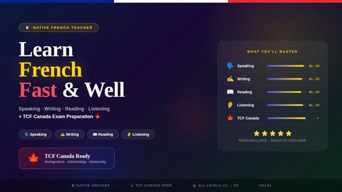 I can also help you prepare for the TCF Canada exam, with a practical approach focused on speaking, listening, and real exam conditions.