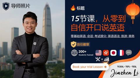 英语教师自营 - 佛山市, Cina我有丰富的兼职英语教学经验,主要教授日常会话和基础英语。我在课程中都积极参与,帮助学生提升他们的英语交流能力。