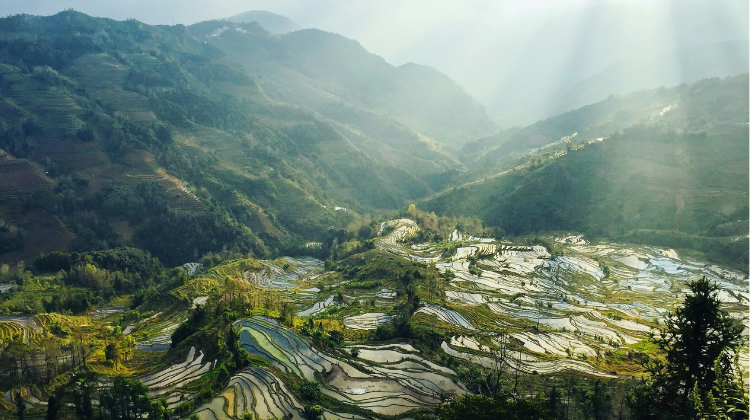 Located in China’s southwest, bordering Laos and Myanmar, Yunnan’s beauty goes far beyond its gentle climate. It’s in the golden glow of rice terraces after rain, the earthy scent of Pu’er tea (普洱茶) drifting through mountain streets, the snow-capped Himalayan peaks, and the way multiple cultures come together to shape one landscape with quiet respect. Here, beauty isn’t only something you see — it’s something you feel in the slow, steady rhythm of life.