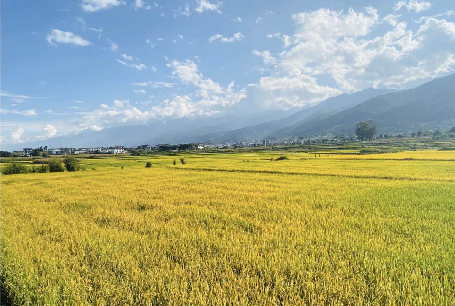 Among them, the Bai ethnic group (白族) has long shaped the spirit of Dali. Their whitewashed houses stand between Cangshan Mountain (苍山) and Erhai Lake (洱海). Driving along Erhai, I was mesmerized by the golden glow of the rice fields. Everything seemed to slow down, and the China before me was no longer the ultra-modern version we know, but one that moves to the quiet rhythm of the earth.