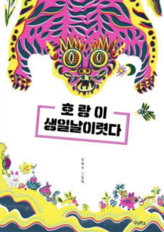 This book is a picture book where all the tigers from Korean folktales make an appearance. As you can see on the cover, the unique and distinctive pop-art style illustration is astonishing, and the colors are very trendy.