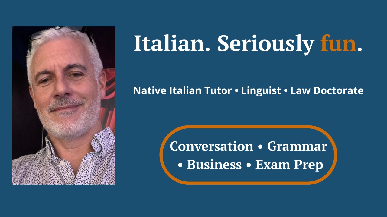 Structured grammar, conversation practice and accent reduction for fluent real-life speaking Mi piace creare lezioni divertenti cercando materiale di vostro interesse in modo da non annoiarvi. Ho un’ottima pronuncia , non ho uno specifico accento regionale. Che siate alle prime armi, che vogliate raggiungere una perfetta padronanza della lingua attraverso conversazioni complesse o conoscere la cultura italiana sarò lieto di aiutarvi. I like to make amusing lessons finding teaching materials of your interest. I have an excellent pronunciation, I do not have a specific regional accent. Whether you are a beginner or you would like to get a perfect proficiency of my language through complex conversations or have a better knowledge of the italian culture I will be glad to help you.