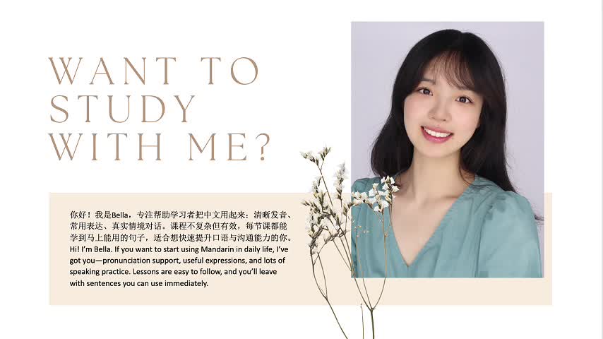 I can teach Chinese and English courses. My teaching style is interactive and encouraging. You can tell me what you want to learn, and we can study together. Through this process, we can both improve.