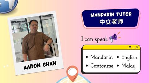 嗨大家好,我是来自马来西亚吉隆坡的Aaron老师,。中文是我的母语。除了中文,我还会说马来文、英文及广东话。希望你能享受学习新语言的乐趣。
