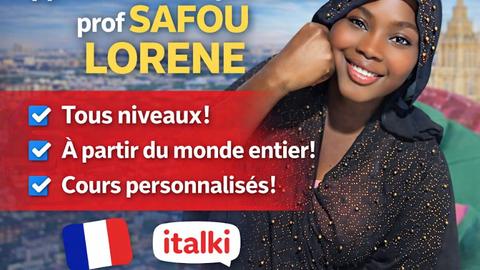 Bonjour и добро пожаловать! Меня зовут Лорен, я преподавательница французского языка из Камеруна с пятилетним опытом работы в частной школе. Мне нравится делиться знаниями, и я помогаю своим ученикам обрести уверенность в себе и добиваться стабильных успехов благодаря четкому, структурированному и мотивирующему подходу. Моя цель проста: помочь вам полюбить французский язык и эффективно достигать поставленных целей.