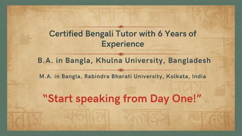 Learning Bangla with Tania is always a great experience. She is very professional, kind, and explains concepts clearly. She provides helpful materials for practice and makes learning Bangla enjoyable and effective. Highly recommended!