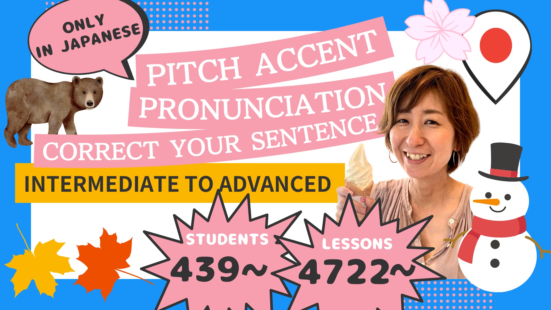 Master natural Japanese pronunciation and pitch accent with me! 私は2019年6月から、日本語を教えています。 日本語の会話をしながら、日本語を教えます。 英語は話しません。 「日本語」と「あなたの国の言葉」は違います。 日本語の会話をしながら、文法や発音などを教えます😊 I have been teaching Japanese since June 2019. I teach Japanese while having Japanese conversations. I don't speak English. "Japanese" and "the language of your country" are different. While having a conversation in Japanese, I will teach you grammar and pronunciation 😊